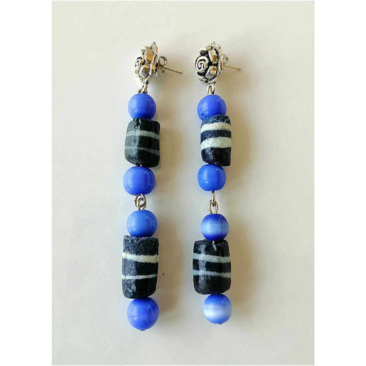 Ghanaian krobo bead & glass bead earrings